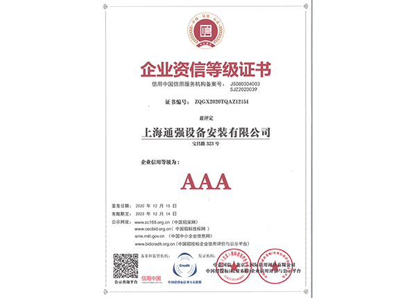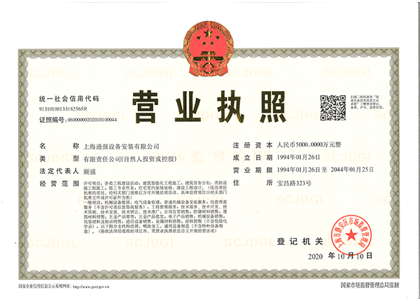 上海通強(qiáng)設(shè)備安裝有限公司注冊(cè)資金2000萬(wàn)元,資產(chǎn)總量為100000萬(wàn)元的專業(yè)設(shè)備安裝公司,公司專業(yè)從事工業(yè)與民用建筑的設(shè)備安裝、非標(biāo)設(shè)備的制作、鋼結(jié)構(gòu)制作安裝、中央空調(diào)系統(tǒng)的安裝,水電及管道的安裝。經(jīng)過(guò)20多年艱苦創(chuàng)業(yè)現(xiàn)已成為一個(gè)具有國(guó)家二級(jí)安裝資質(zhì),獲得上海市“重合同,守信用”的施工單位。
